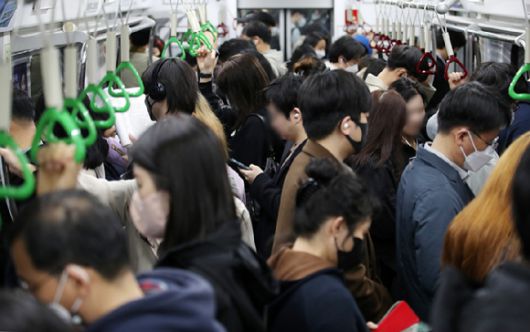 김포도시철도(김포골드라인) 열차에서 출근 시간대 타는 냄새가 난다는 신고가 들어와 운영사가 원인 조사에 나섰다. 사진은 지난 4월 14일 오전 서울 강서구 김포골드라인 김포공항역 승강장이 승객들로 붐비고 있는 모습. [사진=뉴시스] |