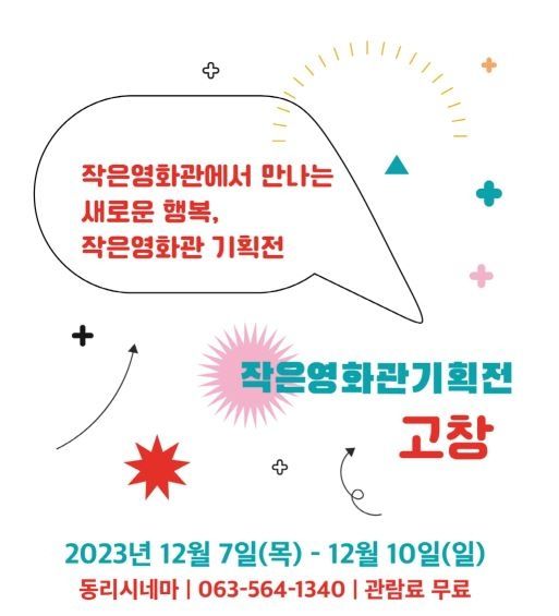 전북 고창군 작은 영화관인 동리시네마에서 오는 7일부터 10일까지 나흘간 ‘2023 작은 영화관 기획전’이 열린다.
