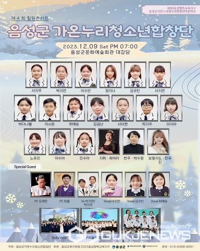 (음성=국제뉴스) 이재기 기자 = 충북 음성군가온누리청소년합창단(대표 최아라)이 오는 9일 저녁 7시에 음성군문화예술회관 대강당에서 제4회 힐링콘서트를 개최한다고 밝혔다.