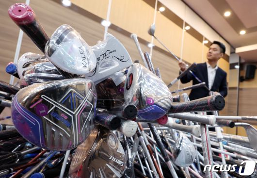 (인천=뉴스1) 이동해 기자 = 6일 오전 인천 중구 인천본부세관에서 세관 관계자들이 밀수업자 A(39)씨로부터 압수한 중국산 짝퉁 골프채를 살펴보고 있다. A씨는 2021년 10월부터 올해 8월까지 중국 온라인쇼핑몰에서 구매한 17억9000만원 상당 유명 짝퉁 골프채 764세트를 밀수해 정품으로 둔갑시켜 중고거래 사이트를 통해 판매한 혐의를 받고 있다. 2023.12.6/뉴스1