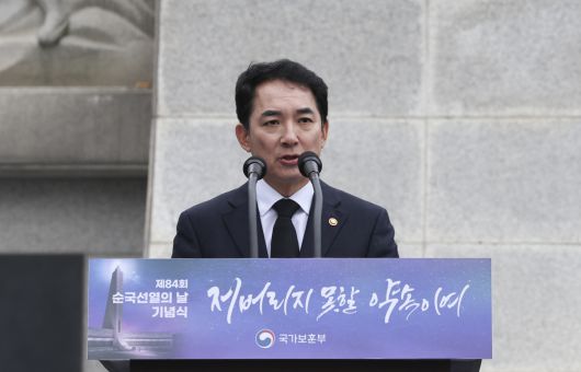 [서울=뉴시스] 김근수 기자 = 박민식 국가보훈부 장관이 17일 오전 서울 서대문독립공원 순국선열추념탑에서 열린 제84회 순국선열의 날’ 기념식에서 기념사를 하고 있다. 2023.11.17. ks@newsis.com |