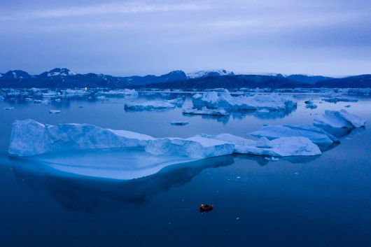 그린란드 동부 쿨루수크 타운 부근의 빙하 옆을 지나가는 모습./연합뉴스 |