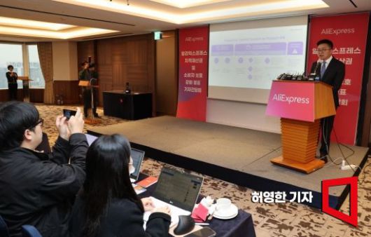 글로벌 온라인 마켓플레이스 알리익스프레스가 6일 서울 롯데호텔에서 '지적재산권 및 소비자 보호 강화' 발표 기자간담회를 열었다. 레이 장 알리익스프레스 코리아 대표가 가품과 불량 판매자 등 소비자 권익 침해 방지 방안을 이야기하고 있다. <ⓒ투자가를 위한 경제콘텐츠 플랫폼, 아시아경제(www.asiae.co.kr) 무단전재 배포금지>
