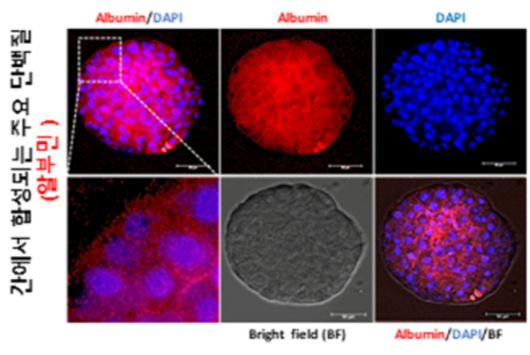 또한 돼지 중간엽줄기세포와 같이 배양했을 때 120일간 장기배양에 성공했고 실제 생체 간과 유사하게 알부민과 요소 분비 및 글루카곤 축적 등 핵심 기능이 정상적으로 유지된 것으로 나타났다.