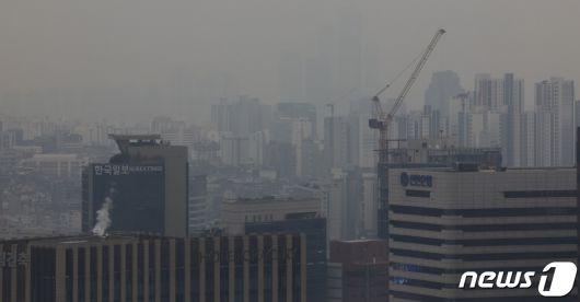 (서울=뉴스1) 허경 기자 = 전국 대부분 지역에 초미세먼지 농도가 '나쁨' 수준을 보인 6일 서울 중구 롯데호텔에서 바라본 도심 일대가 뿌옇다.. 2023.12.6/뉴스1neohk@news1.krCopyright ⓒ 뉴스1. All rights reserved. 무단 전재 및 재배포, AI학습 이용 금지.