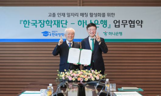 한국장학재단(이사장 배병일)과 하나은행(은행장 이승열)은 지난 5일 서울 하나은행 본점에서 고졸 인재 일자리 매칭 활성화를 위한 업무협약(MOU)을 체결했다.