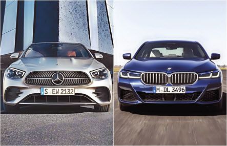 메르세데스-벤츠(왼쪽)와 BMW 브랜드 세단 자동차 [메르세데스-벤츠·BMW 제공] |