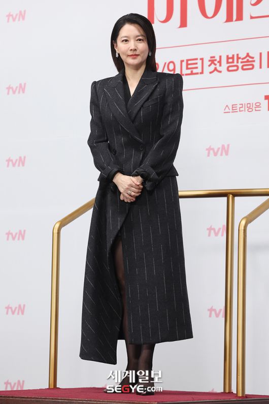 배우 이영애가 6일 오전 서울 구로구 라마다 서울 신도림 호텔에서 열린 tvN 새 토일드라마 '마에스트라'의 제작발표회에 참석해 포즈를 취하고 있다.