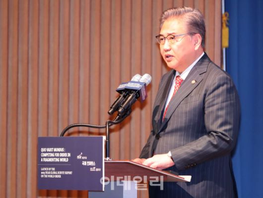 [이데일리 방인권 기자] 박진 외교부 장관이 6일 서울 중구 대한상공회의소에서 '세계, 어디로 가고 있는가: 파편화된 세계 속 질서를 위한 경쟁'을 주제로 열린 2023 NEAR 글로벌 서베이 보고서 발표 국제콘퍼런스에서 축사를 하고 있다.