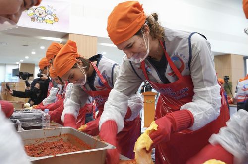 세르비아 출신의 부키리치와 태국 출신 타나차는 한국도로공사 임직원들과 함께 약 3천㎏의 김치를 만들었다.