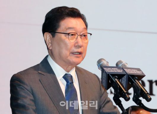 [이데일리 방인권 기자] 정덕구 니어재단 이사장이 6일 서울 중구 대한상공회의소에서 '세계, 어디로 가고 있는가: 파편화된 세계 속 질서를 위한 경쟁'을 주제로 열린 2023 NEAR 글로벌 서베이 보고서 발표 국제콘퍼런스에서 개회사를 하고 있다.