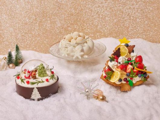 통나무 모양의 크리스마스 전통 케이크 ‘부드 노엘’과 크리스마스 리스 장식에서 영감을 받은 ‘딸기 리스 무스 케이크’, 제주산 딸기에 뉴질랜드산 동물성 생크림을 더한 ‘딸기 생크림 케이크’다.
