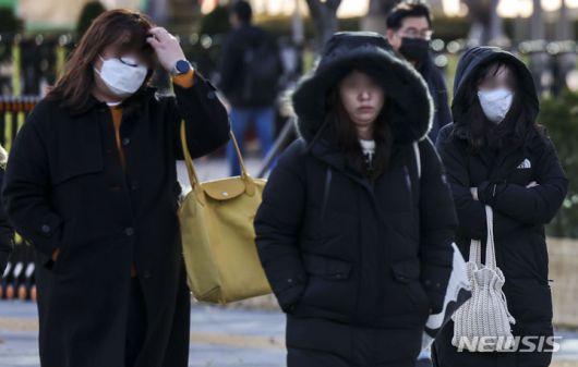 [서울=뉴시스] 정병혁 기자 = 서울 종로구 광화문네거리에서 두꺼운 옷차림을 한 시민들이 이동하고 있다. 2023.11.24. jhope@newsis.com |