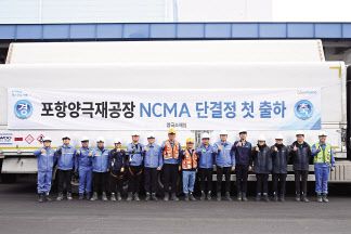 포스코퓨처엠 포항 양극재 공장 직원들이 지난달 27일 미국 얼티엄셀즈에 공급하는 하이니켈 NCMA 단결정 양극재 초도 출하를 기념하고 있다. [포스코퓨처엠 제공] |
