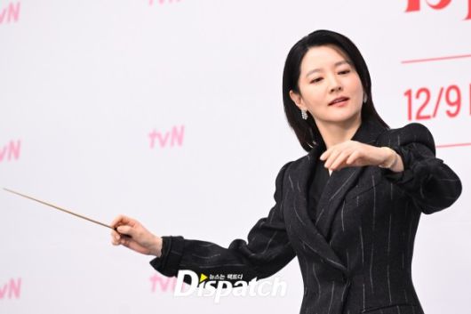 이영애는 스트라이프 롱코트로 멋을 냈다. 지휘봉 퍼포먼스도 펼쳤다.