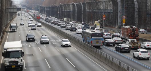 서울 서초 경부고속도로 잠원IC 부근 하행선(오른쪽)이 차량들로 붐비고 있다. 조현호 기자 hyunho@ |