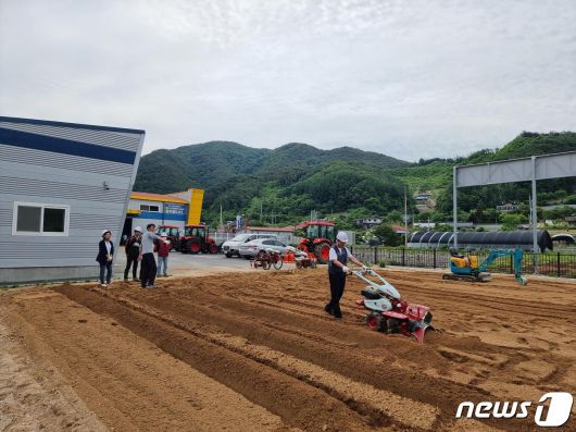 단양 삼태산농촌체험휴양마을에서 도시민들이 농사 체험을 하고 있다. |
