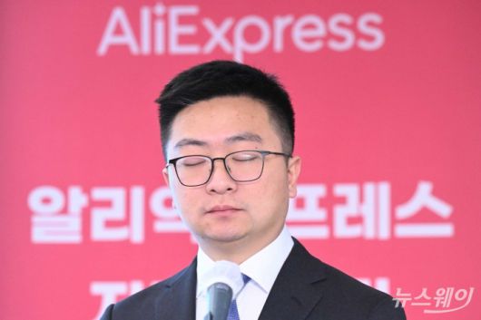 레이 장 알리익스프레스 코리아 대표가 6일 오전 서울 중구 롯데호텔에서 열린 '지적재산권 및 소비자 보호 강화 발표' 기자간담회에서 잠시 눈을 감고 있다.