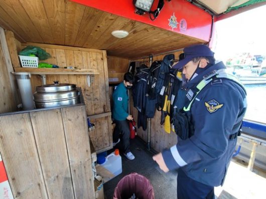 낚시어선 화재예방을 위해 안전점검 을 펼치고 있다 = 완도해경 제공 |