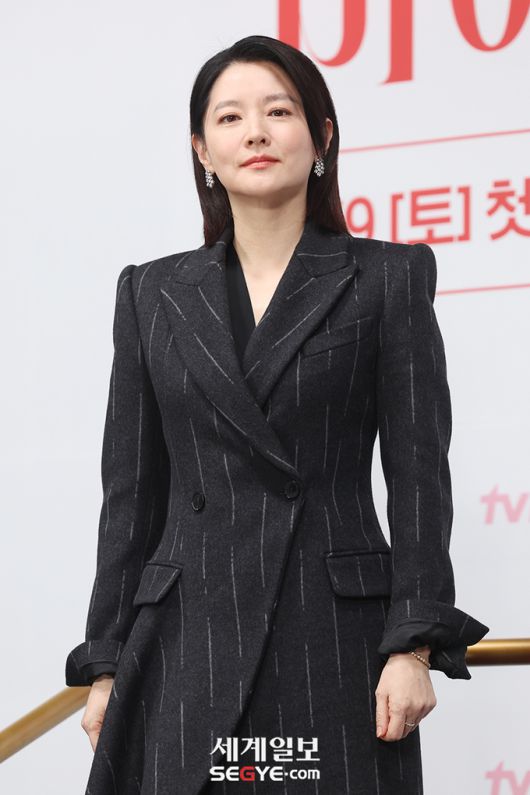 배우 이영애가 6일 오전 서울 구로구 라마다 서울 신도림 호텔에서 열린 tvN 새 토일드라마 '마에스트라'의 제작발표회에 참석해 포즈를 취하고 있다.