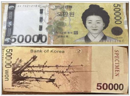 특히 최근에는 '영화소품' 또는 'SPECIMEN(견본)' 등의 문구가 포함된 위폐가 제작돼 주로 고령층 상인들이 운영하는 전통시장이나 노점상 등에서 많이 유통되고 있는 것으로 나타났다.