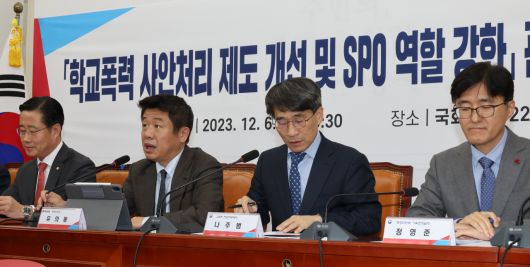 유의동 국민의힘 정책위의장이 6일 국회에서 학교폭력 처리제도 개선 당정협의회를 하고 있다. [연합] [헤럴드경제=박상현 기자] 당정, ‘학폭전담조사관’ 신설…학교전담경찰관도 증원 추진 pooh@heraldcorp.com Copyright ⓒ 헤럴드경제 All Rights Reserved.