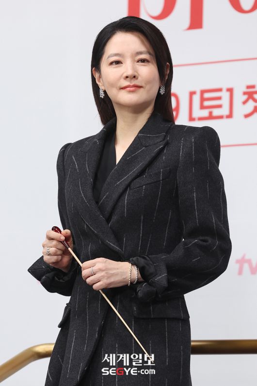 배우 이영애가 6일 오전 서울 구로구 라마다 서울 신도림 호텔에서 열린 tvN 새 토일드라마 '마에스트라'의 제작발표회에 참석해 포즈를 취하고 있다.