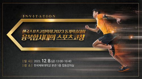 (서울=연합뉴스) 김동찬 기자 = 한국스포츠코칭학회(회장 장혁기 서울여대 교수)는 8일 서울 송파구 한국체육대학교에서 '융복합시대의 스포츠코칭'을 주제로 2023년 하반기 학술대회를 개최한다.