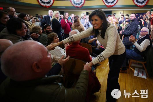지난 11월 28일(현지시간) 미국 뉴햄프셔주 데리에서 선거 운동하는 니키 헤일리 전 유엔 대사의 모습. [사진=로이터 뉴스핌] |