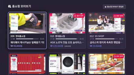 SK브로드밴드는 최근 B tv 홈쇼핑 모아보기를 더욱 고도화해 ‘홈쇼핑 포털 서비스’로 발전시켰다고 설명했다. 홈쇼핑 모아보기 화면의 사용자 인터페이스(UI)를 크게 확대해 가독성을 높이는 동시에 홈 화면 상단에 독(Dock) 형태의 ‘쇼핑 메뉴’를 신설해 편의성을 높였다. 시청자는 쇼핑 메뉴를 선택해 B tv에서 방송 중인 홈쇼핑 채널의 실시간 순위와 기획전 특가상품 등을 탐색할 수 있다.