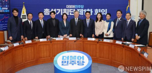 [서울=뉴스핌] 이형석 기자 = 이재명 더불어민주당 대표와 위원들이 6일 오전 서울 여의도 국회에서 열린 총선기획단 1차 회의에서 기념촬영을 하고 있다. 2023.11.06 leehs@newspim.com |