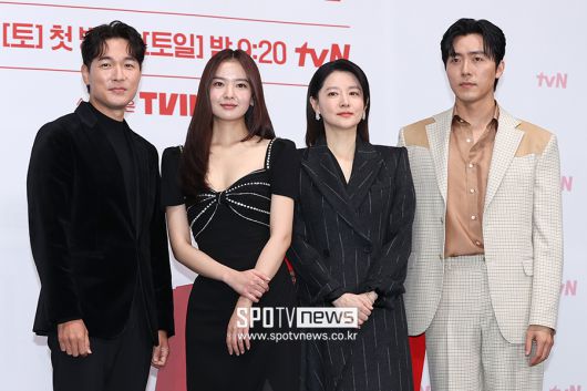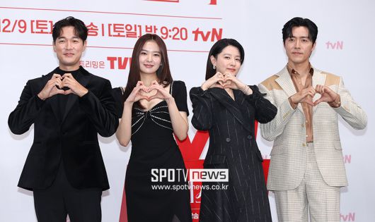[스포티비뉴스=서울, 곽혜미 기자] tvN 새 토일드라마 '마에스트라' 제작발표회가 6일 오전 서울 구로구 라마다 서울 신도림 호텔에서 열렸다. 배우 김영재, 황보름별, 이영애, 이무생이 포즈를 취하고 있다. <저작권자 ⓒ SPOTV NEWS. 무단전재 및 재배포 금지>