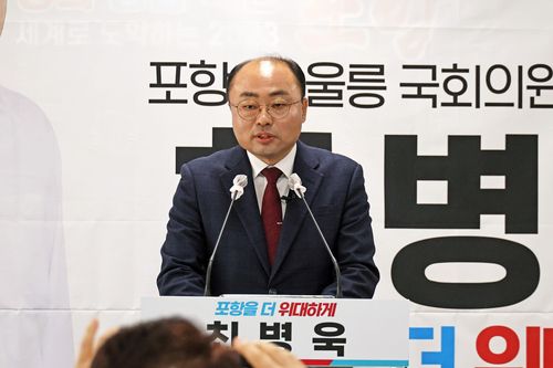 (포항=연합뉴스) 손대성 기자 = 최병욱(51) 전 국토교통부 노조위원장이 6일 경북 포항시청 브리핑룸에서 기자회견을 열고 포항남구·울릉 선거구 국회의원 출마를 선언했다.