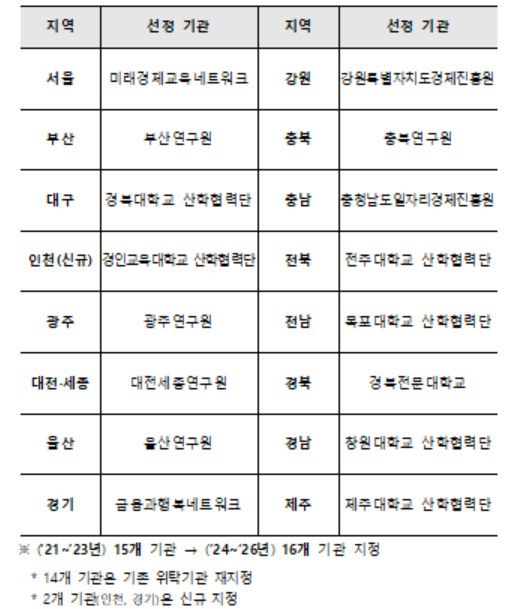 내년부터 2026년까지 지역 경제교육 활성화를 지원하기 위한 16개 지역경제교육센터도 새롭게 지정했다. 센터의 유효기간은 3년이다. 센터는 정부와 지자체의 지원을 받아 해당 시·도 경제교육인력 양성, 지역 실정에 맞는 교재와 프로그램 개발, 소외계층 등 지역주민 교육을 담당한다. 지역경제교육센터와 지방자치단체가 함께 참여하는 협의회도 신설한다.