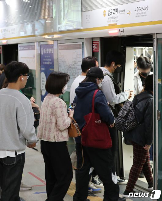 김포골드라인에 탑승하는 승객들.(사진은 기사 내용과 무관함) ⓒ News1 박세연 기자 |