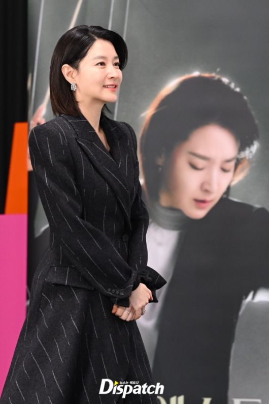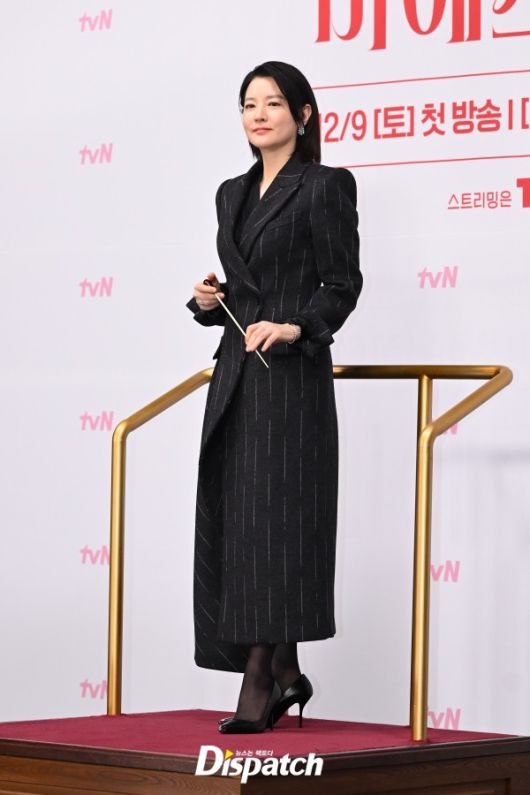 이영애는 스트라이프 롱코트로 멋을 냈다. 우아한 자태가 돋보였다.