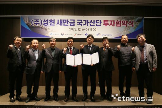 새만금개발청(청장 김경안)은 전라북도·군산시·한국농어촌공사와 함께 6일 성현과 배터리 소재 생산용 설비 및 친환경 에너지 저장 용기 제조공장 설립을 위한 투자협약을 체결했다.