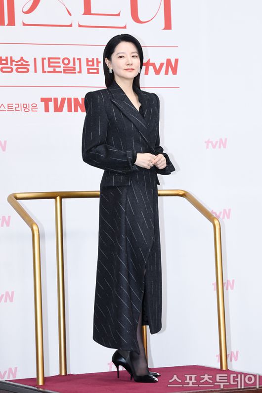 [스포츠투데이 권광일 기자] 배우 이영애가 6일 오전 서울 구로구 라마다 신도림 호텔에서 열린 tvN 새 토일드라마 '마에스트라' 제작발표회에 참석해 포즈를 취하고 있다. 2023.12.06.