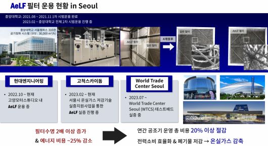 "현재 트레이드 타워 내 공기조화기의 기존 필터와 AeLF 필터를 설치하여 실증 수행 중에 있습니다. 무역센터 테스트베드 실증사업은 한 장소에 국한되지 않고, 코엑스, 트레이드타워, 아셈타워 등 각 실증 수행 아이템의 여건에 맞게 WTCS의 모든 장소를 제공해 선택할 수 있다는 장점이 있습니다. 여건이 된다면 해당 모든 건물에서 AeLF 에어필터의 실증을 수행해 보고 싶습니다." 라고 우상혁 대표는 말했다.