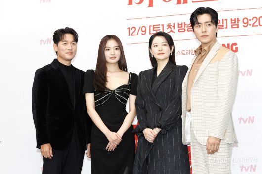 [스타데일리뉴스=백진욱 기자] 배우 김영재-황보름별-이영애-이무생이 6일 오전 서울시 구로구 라마다 신도림 호텔에서 열린 tvN 새 토일드라마 '마에스트라' 제작발표회에 참석해 포토타임을 가지고 있다.