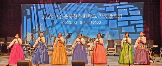 보은문화원은 2023년 문화학교 작품발표회에서 민요 수강생들이 공연을 하고 있다. |