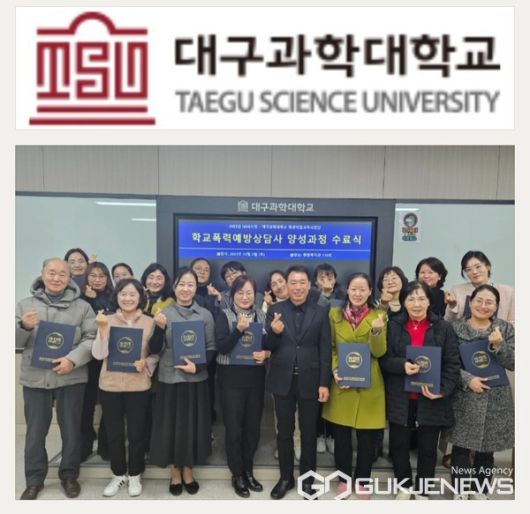 (대구=국제뉴스) 백운용 기자 = 대구과학대학교 박지은 총장은 "고등직업교육거점지구(HiVE)사업의 일환으로 실시된 평생직업교육과정 Well-life 양성 프로그램 '학교폭력예방상담사 양성과정'수료식을 개최했다."고 6일 말했다.