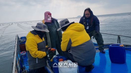 김 양식장서 무기산 사용 여부를 단속 중인 모습. 제공=경기도 |