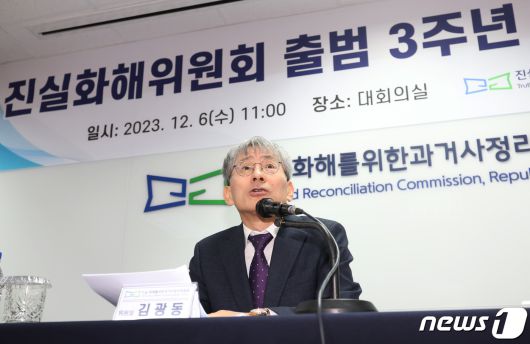 (서울=뉴스1) 김민지 기자 = 김광동 진실·화해를위한과거사정리위원회 위원장이 6일 오전 서울 중구 진화위 대회의실에서 열린 2기 진실화해위원회 출범 3주년 기자간담회에서 인사말을 하고 있다. 2023.12.6/뉴스1kimkim@news1.krCopyright ⓒ 뉴스1. All rights reserved. 무단 전재 및 재배포, AI학습 이용 금지.