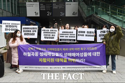 이날 단체는 "성북구 하월곡동 성매매 집결지(미아리 텍사스) 폐쇄 및 이주를 앞두고 성매매 여성들의 탈성매매 및 자활 지원 대책을 긴급히 요구한다"고 밝혔다.
