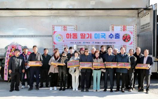 경남 하동군은 지난 5일 농업회사법인 하동옥종수출딸기에서 하승철 군수, 이하옥 군의회 의장, 수출 농가, 관계 공무원 등이 참석한 가운데 하동 옥종딸기의 미국 수출 선적식을 가졌다.