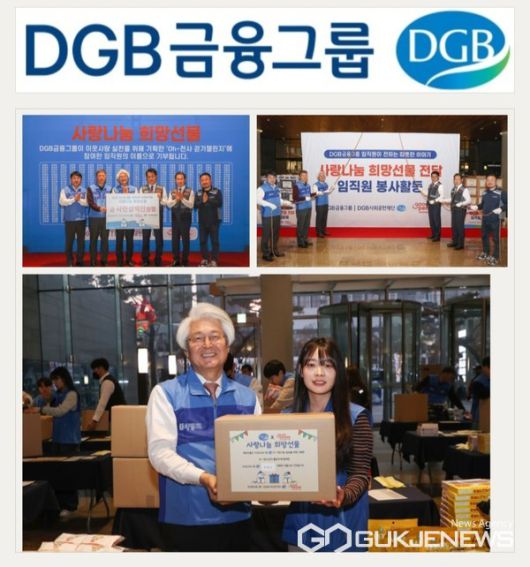 (대구=국제뉴스) 백운용 기자 = 김태오 DGB금융그룹 DGB사회공헌재단 이사장은 5일 "DGB대구은행 제2본점 로비에서 사단법인 굿피플인터네셔널과 함께 '사랑나눔 희망선물' 후원금 4,300만 원 전달식 및 임직원 봉사활동을 진행했다."고 말했다.