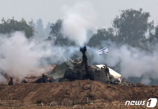 5일(현지시간) 팔레스타인 무장 정파 하마스와 지상전을 개시한 이스라엘 군 포병이 가자 지구 국경에서 포격을 하고 있다. 2023.11.6 ⓒ 로이터=뉴스1 ⓒ News1 우동명 기자 |
