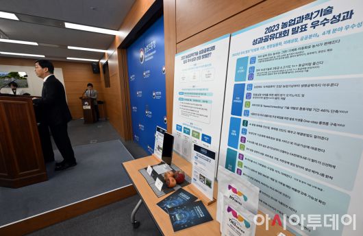 아시아투데이(세종) 박성일 기자 = 윤종철 농촌진흥청 차장이 6일 오전 세종시 정부세종청사 농식품부 기자실에서 ‘2023 농업과학기술 성과공유대회’ 개최 관련 브리핑을 하고 있다.