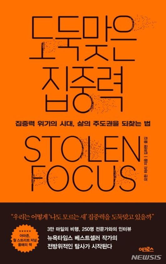 '도둑맞은 집중력'은 현대인이 겪는 집중력 저하의 원인으로 개개인의 자제력 결핍이 아닌 사회적 시스템을 지목하며 대담한 반론을 제기한 인문서다. 올 4월 출간과 함께 화제작으로 떠올랐다. 올해 예스24 종합 베스트셀러 6위를 차지했다.